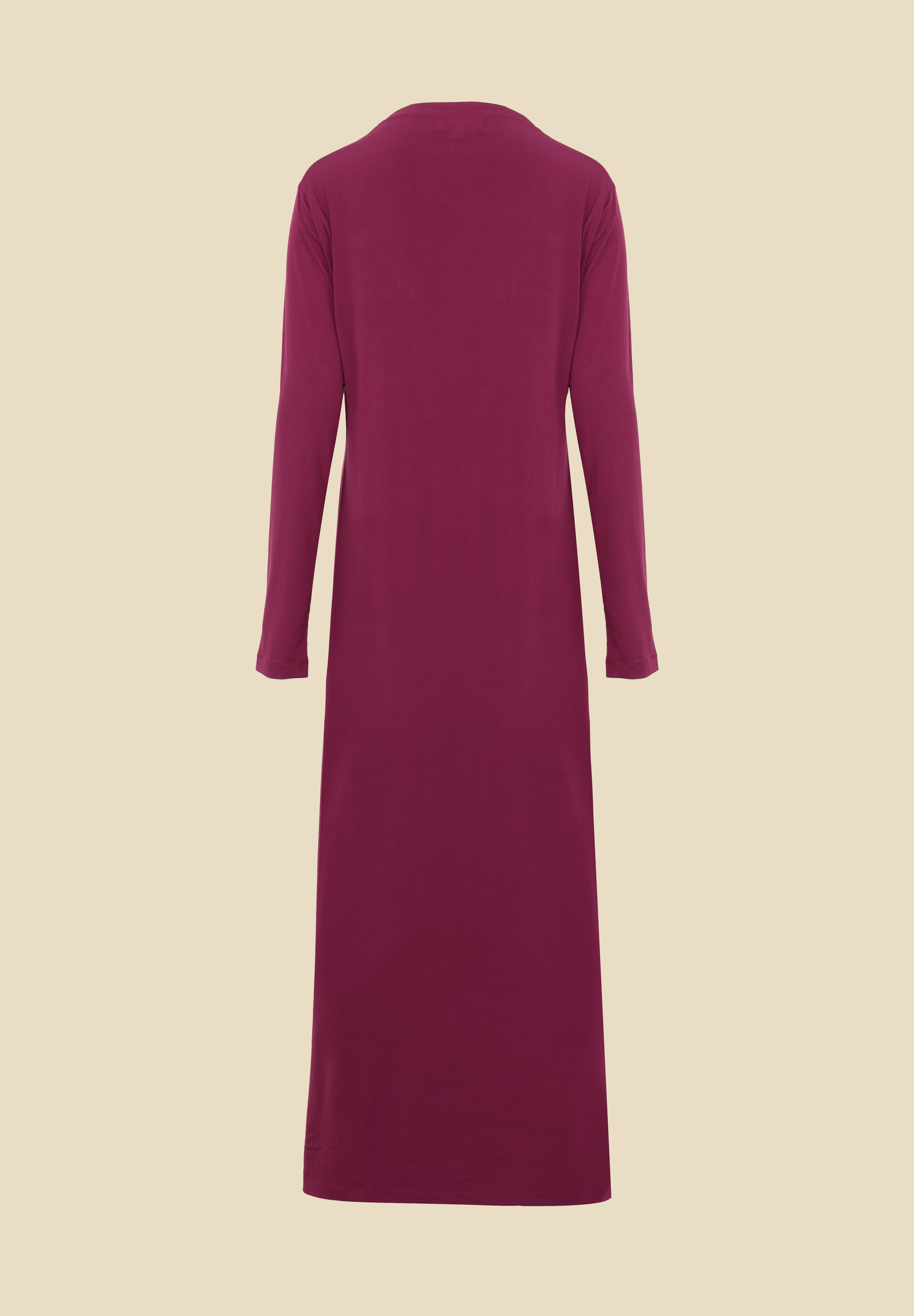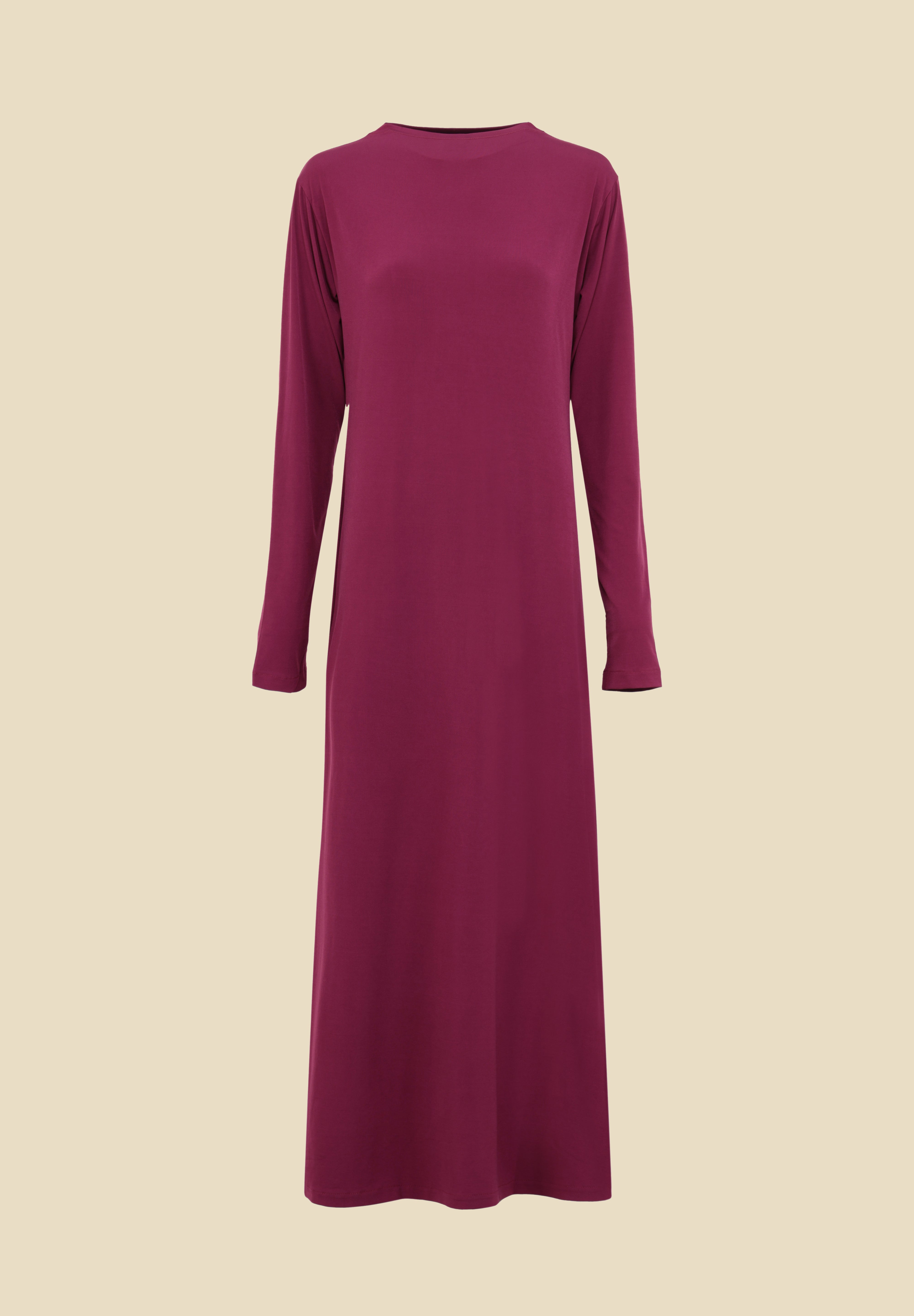 Robe en jersey à coupe droite avec des manches mitaines intégrant un passage pour le pouce. Confort et modernité en parfaite harmonie.