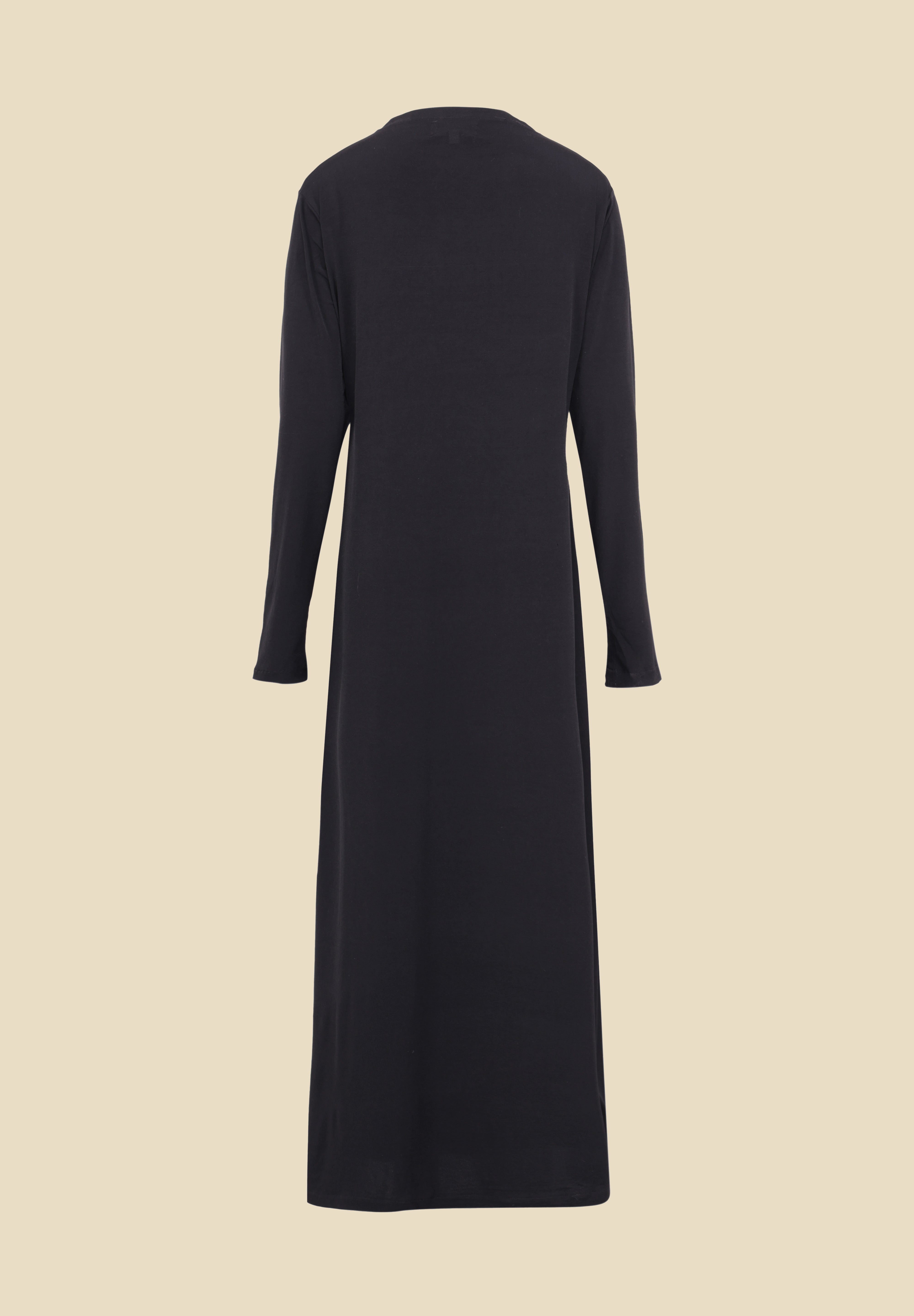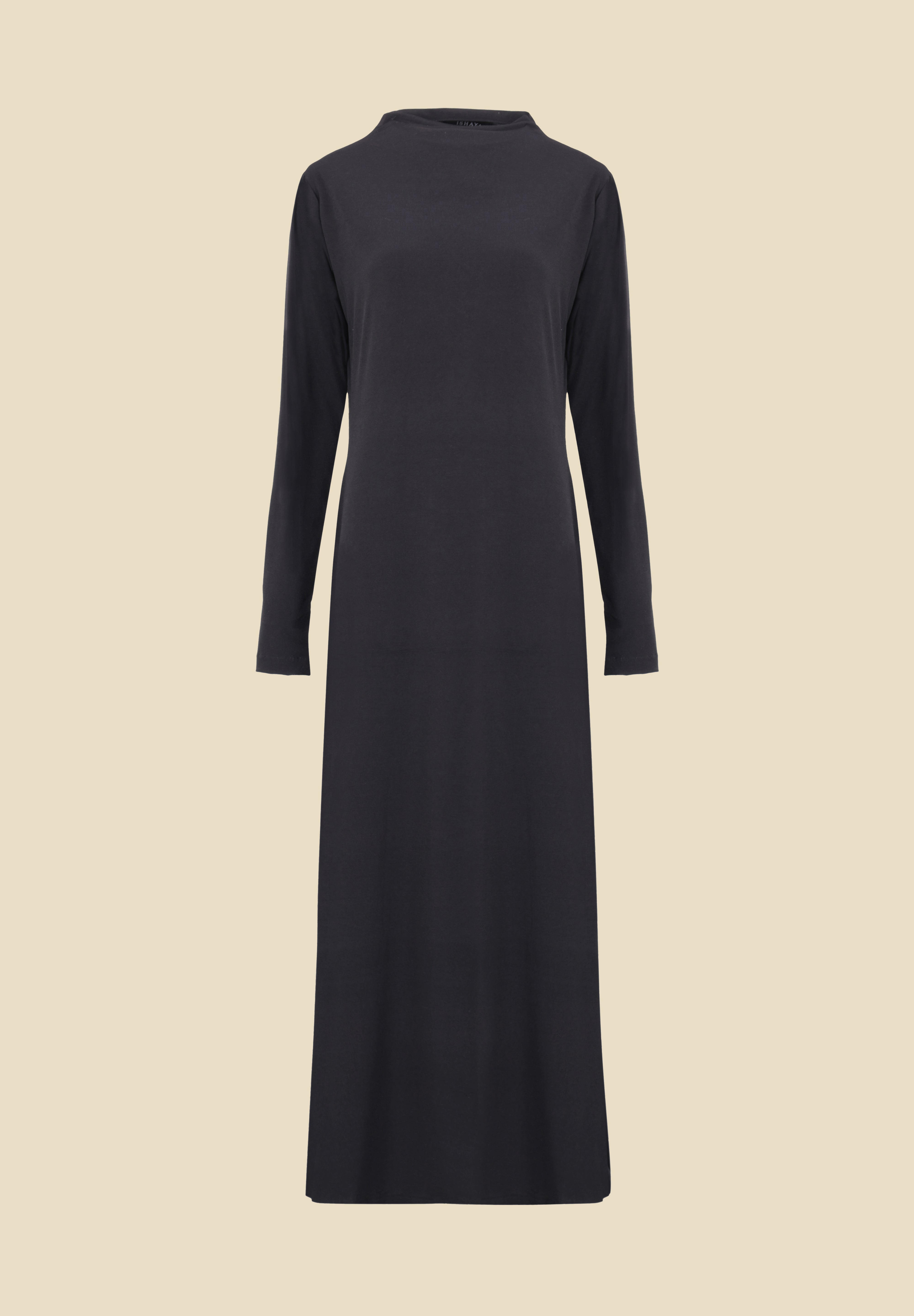 Robe en jersey à coupe droite avec des manches mitaines intégrant un passage pour le pouce. Confort et modernité en parfaite harmonie.