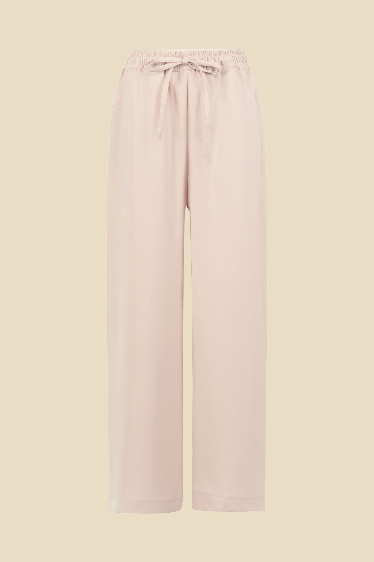 Pantalon ample en tissu crêpe, équipé d’une taille élastique et d’un cordon ajustable pour un