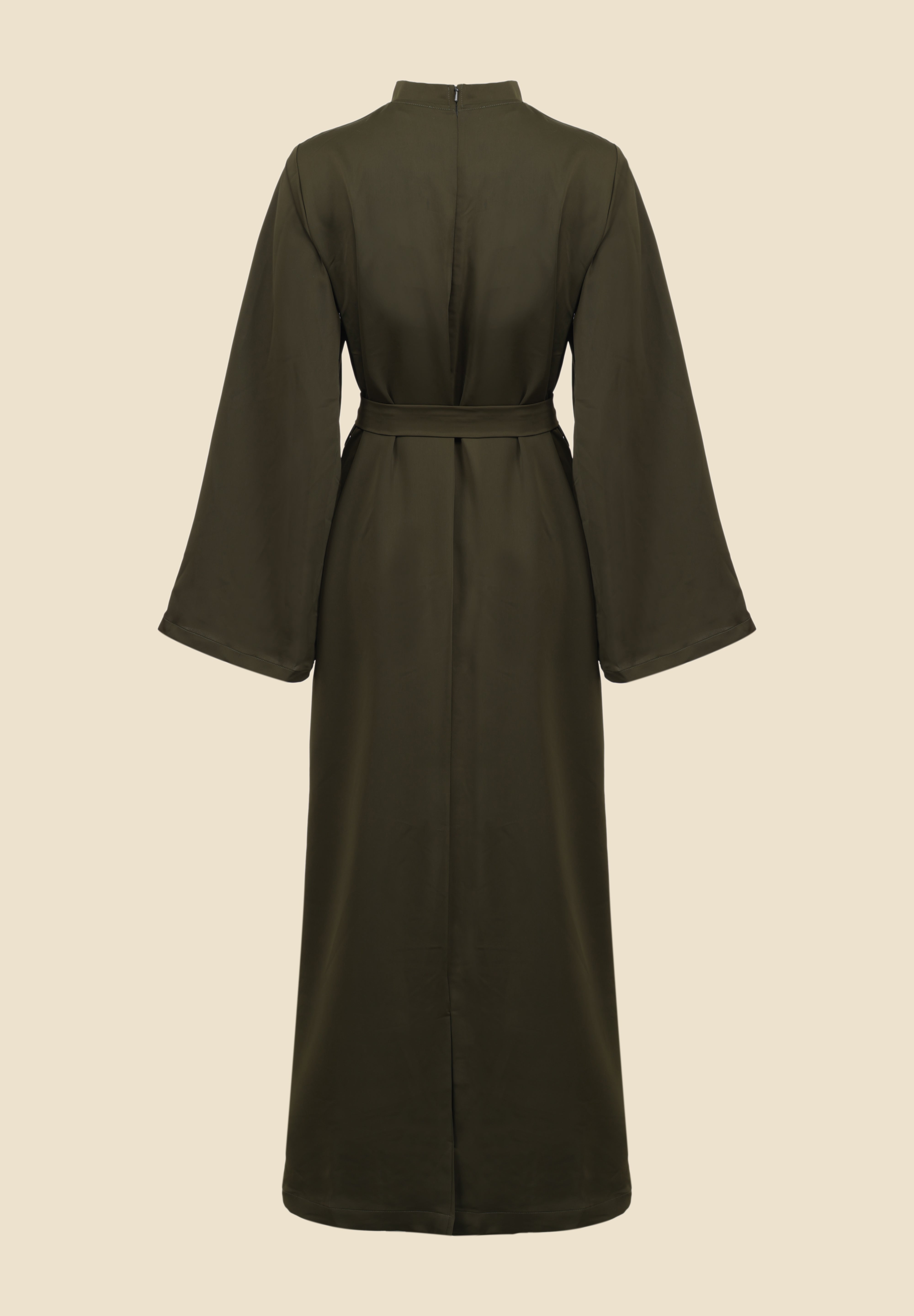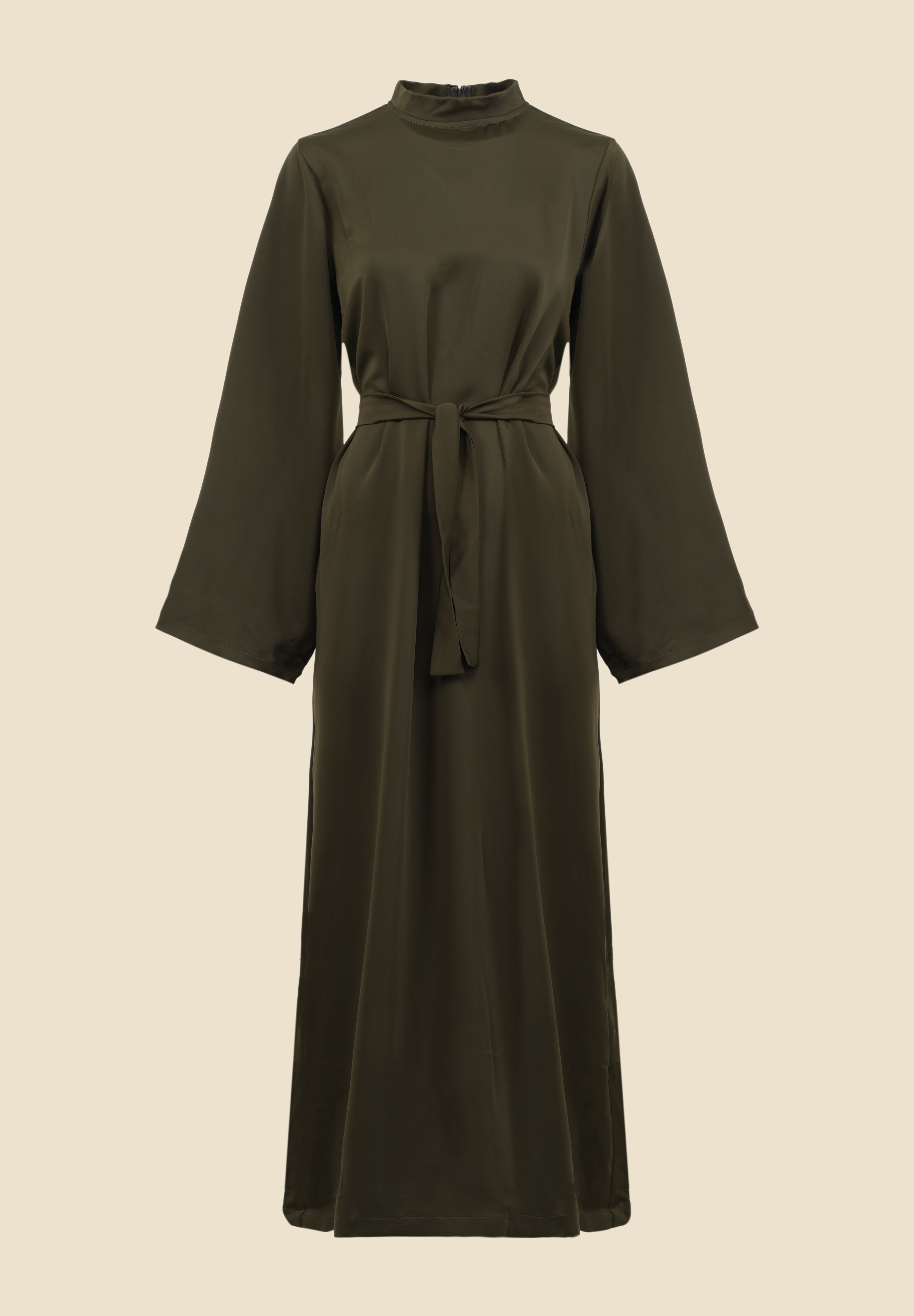 Confectionnée dans un somptueux tissu satiné, la Robe Najma séduit par sa coupe droite fluide et son tombé impeccable. Ses manches droites légèrement évasées apportent une touche de raffinement, tandis que sa ceinture assortie permet de structurer la silhouette selon vos envies.