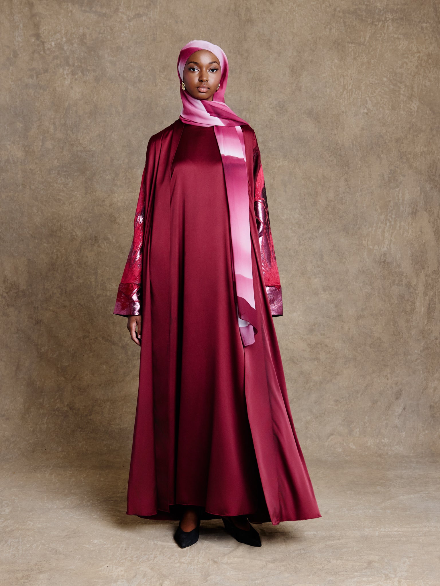 • Ensemble deux pièces : abaya ouverte et sous-robe