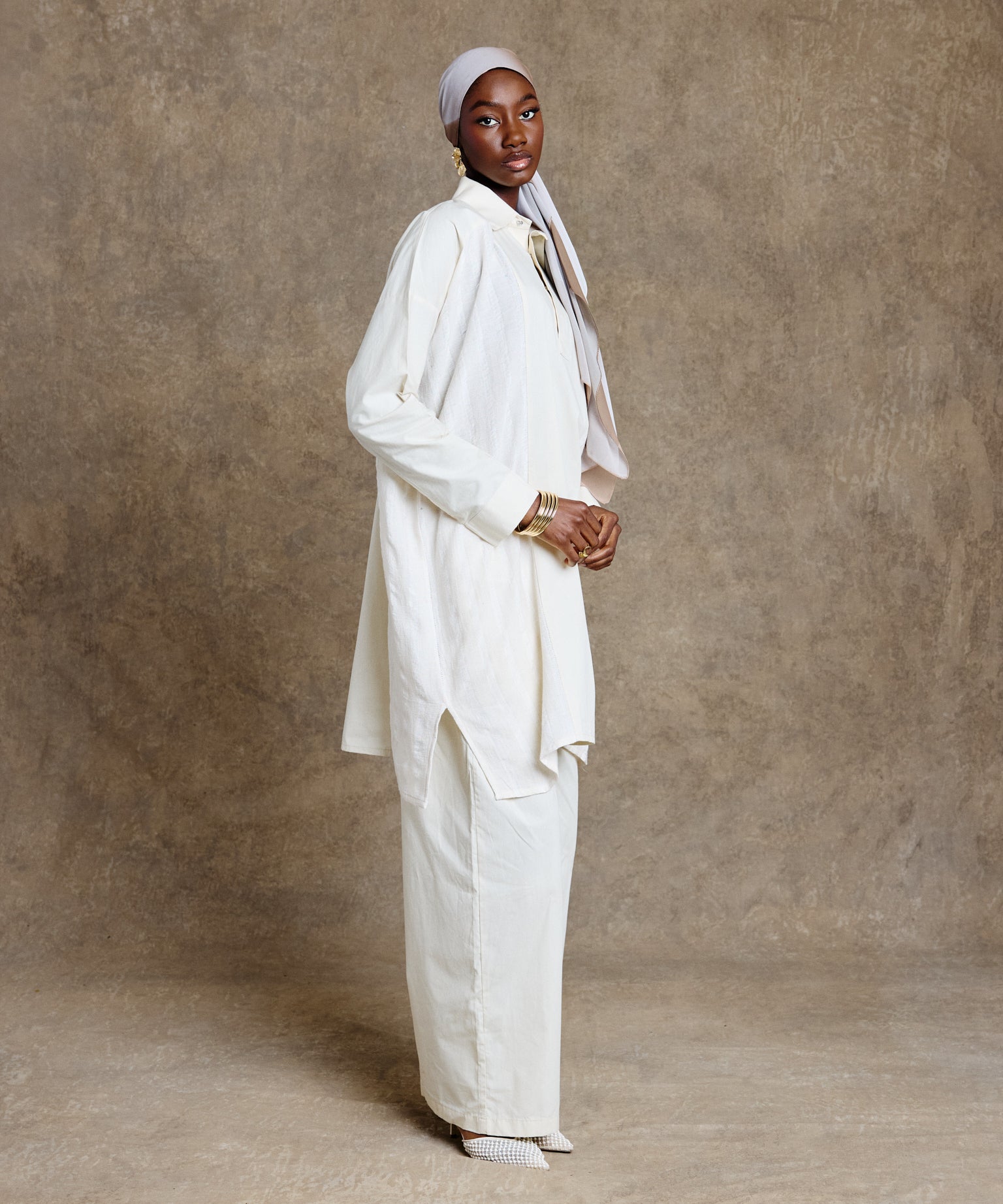 Pantalon crème en popeline