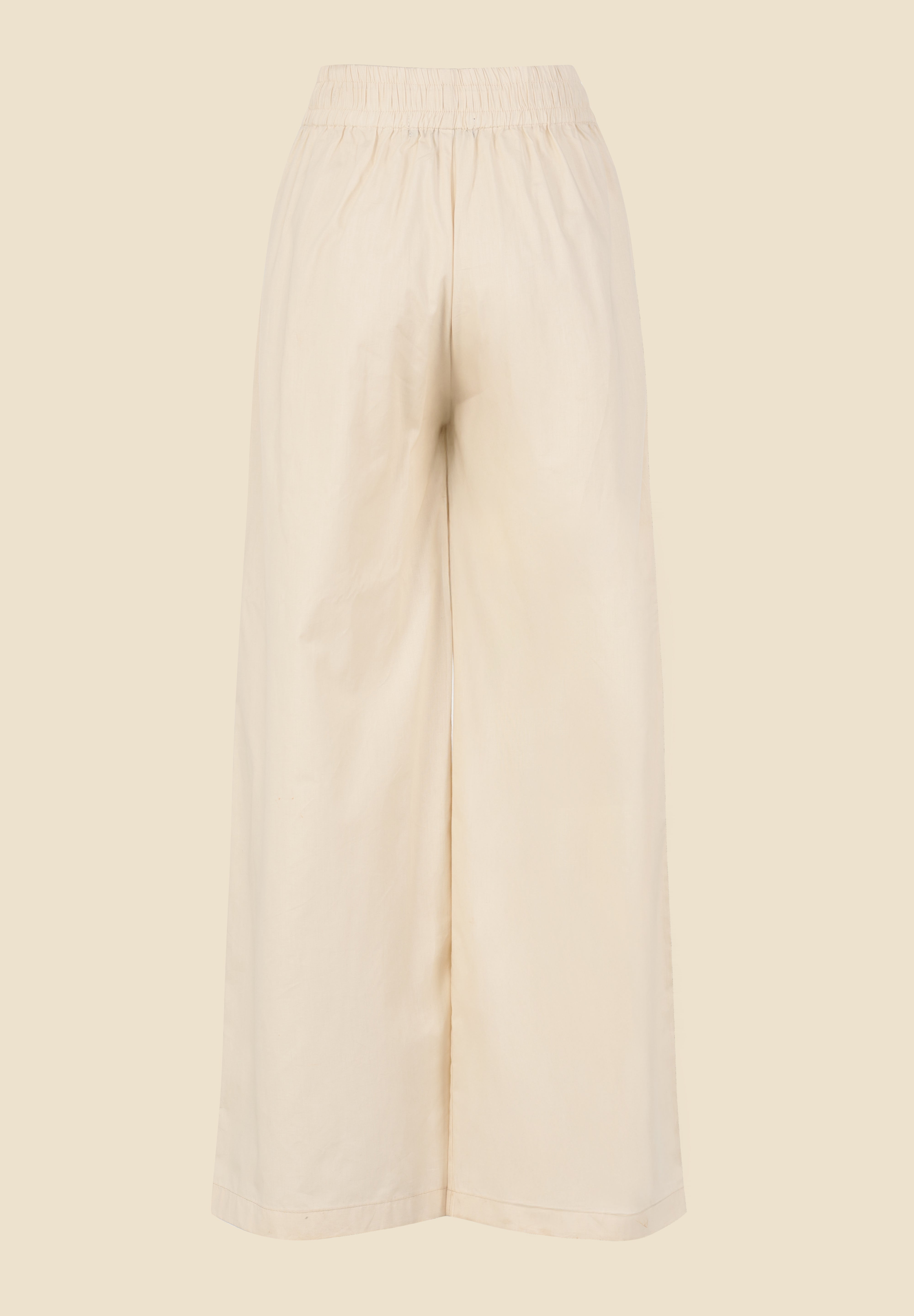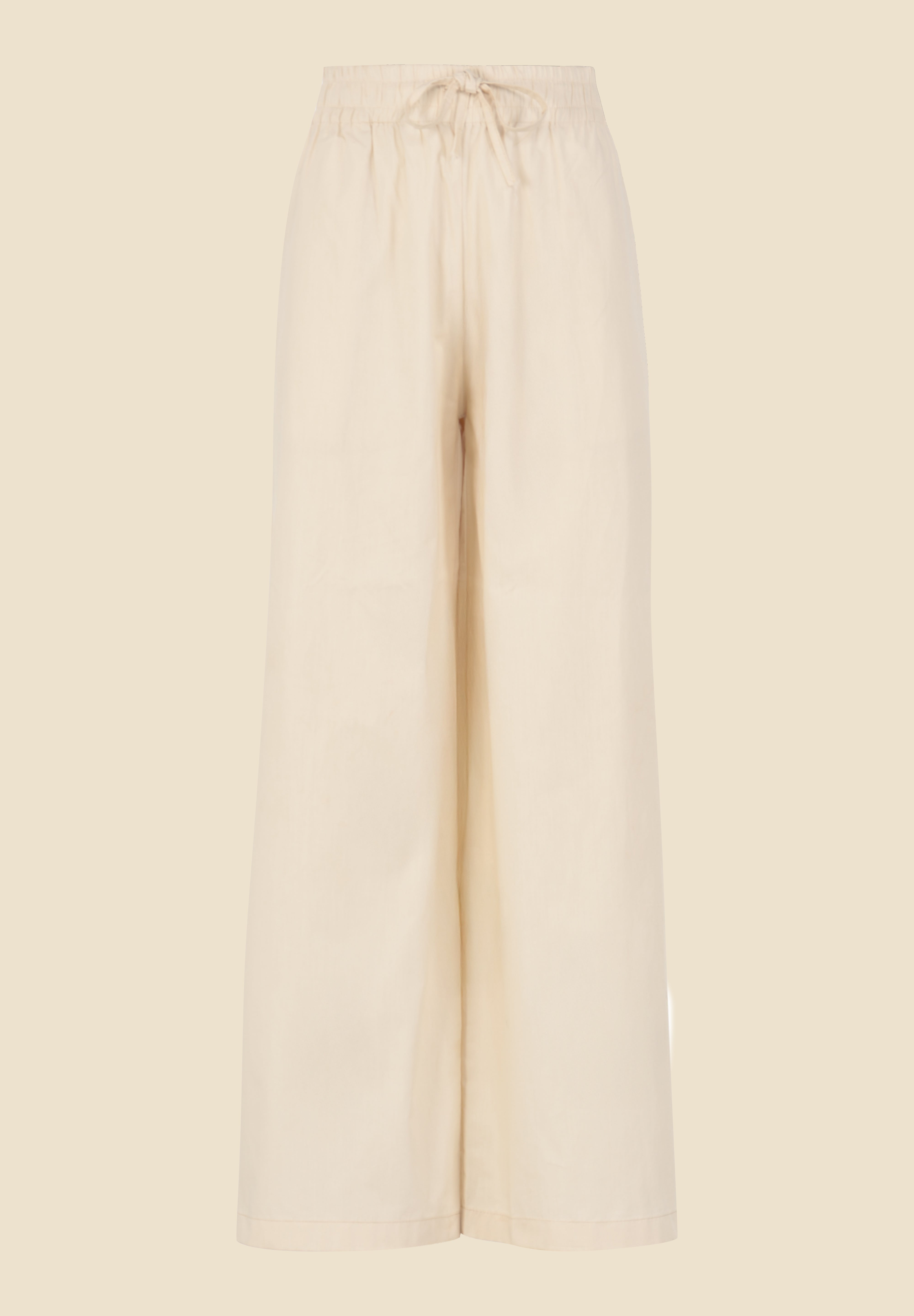 Pantalon droit en popeline de coton, taille élastique et ajustable par cordon, poches latérales. À associer à la tunique Teranga.ä